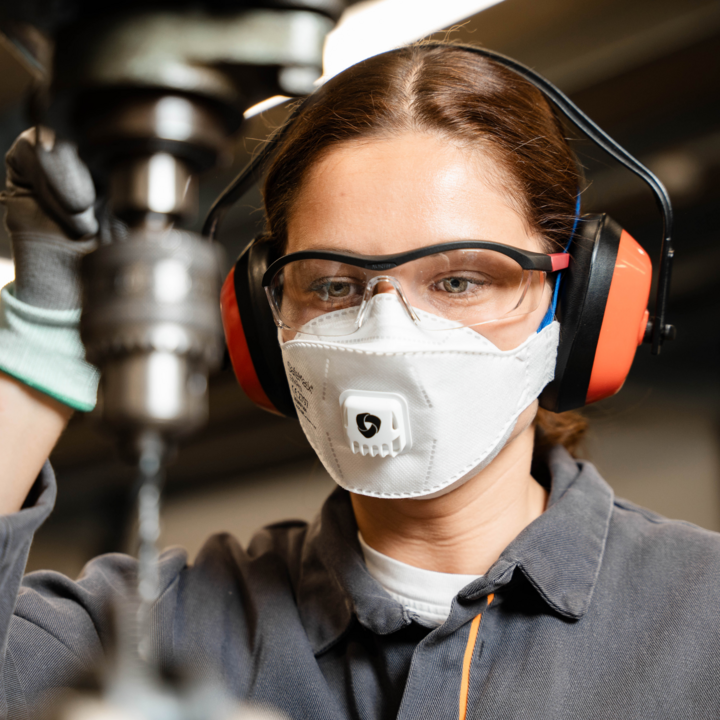 Le masque SafeMask Fit+Pro FFP2 à valve protège contre les virus, bactéries et poussières fines tout en offrant un confort respiratoire renforcé.