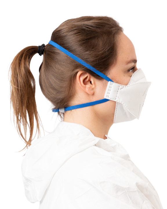 Le masque SafeMask Fit+Pro FFP2 protège contre les virus, bactéries et poussières fines tout en offrant un confort optimal grâce à sa conception en 3 pans.
