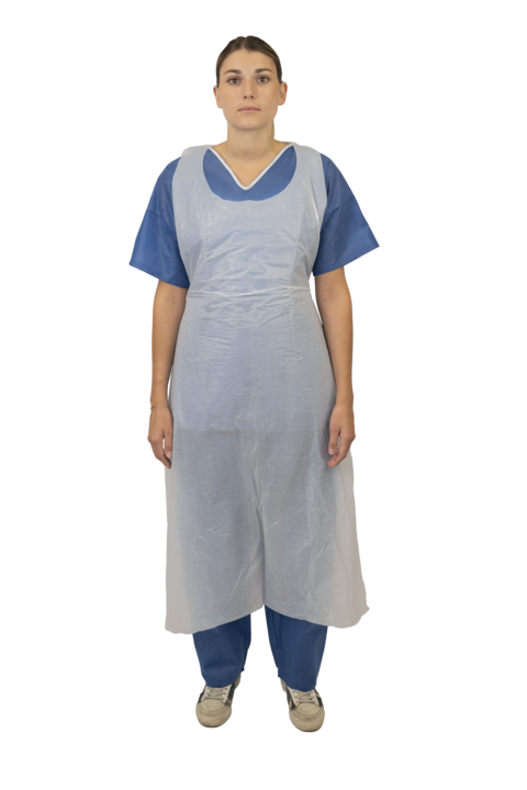 Le tablier en polyéthylène avec liens PE extensibles offre une protection hygiénique et pratique grâce à son système de distribution « un par un ».